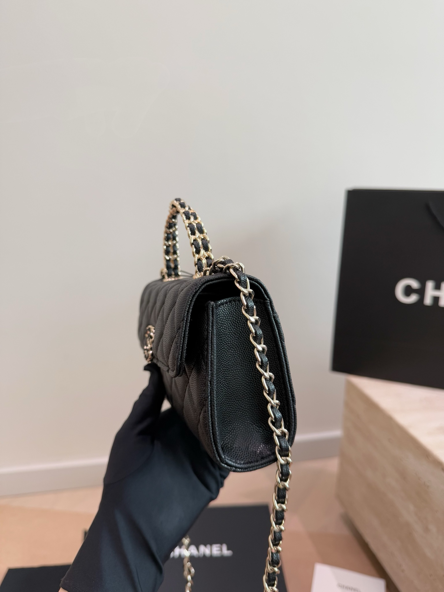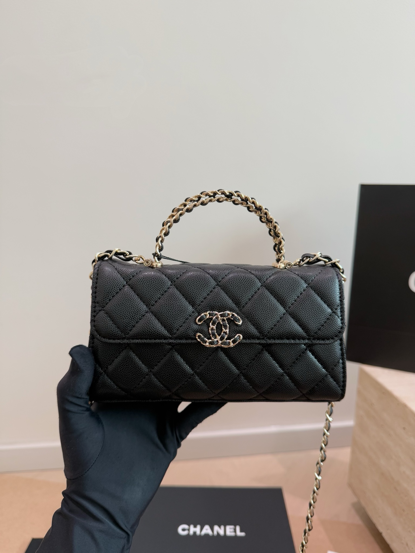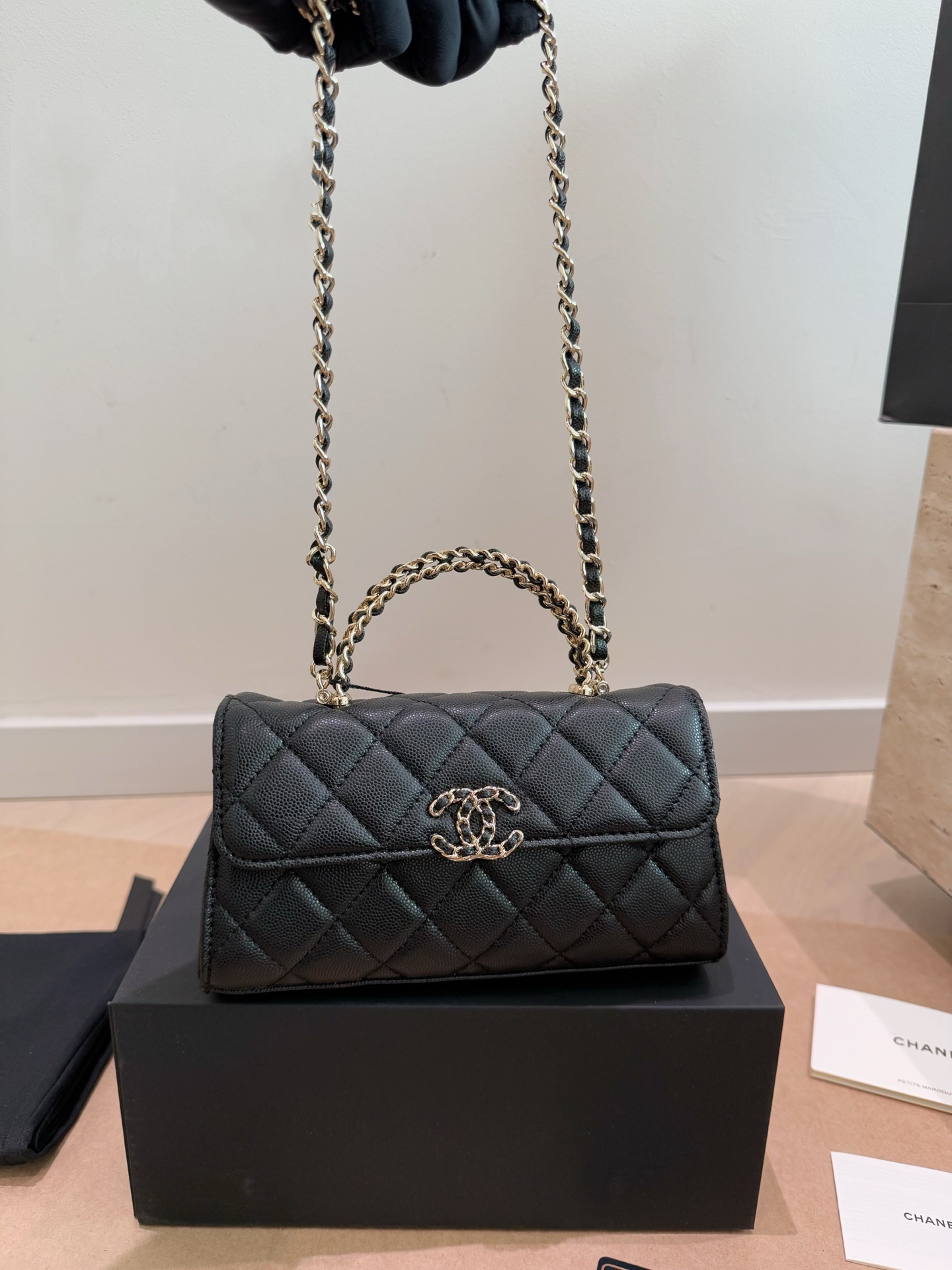CHANEL 23C フラフープ ブラック×ゴールド ハンドバッグ シャネル好きさん必見!